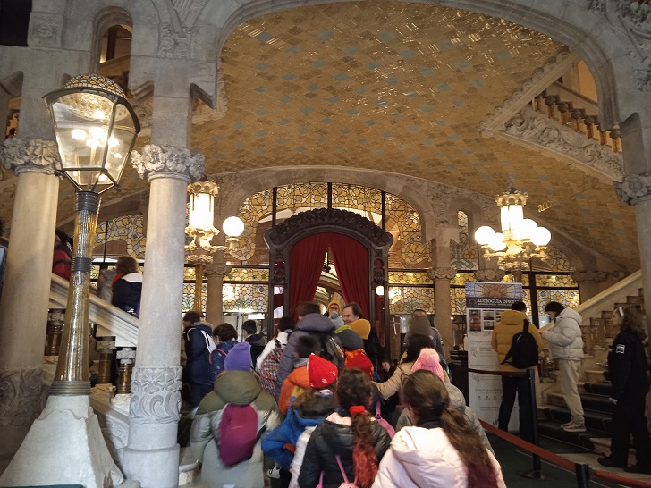 Ahir els nens i nenes de 4t, 5è i 6è vam fer la sortida al Palau de la Música de Barcelona per gaudir del concert Cobla 2.0. Vam xalar amb l’espectacle i amb l’estil arquitectònic de l’edifici.