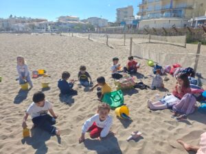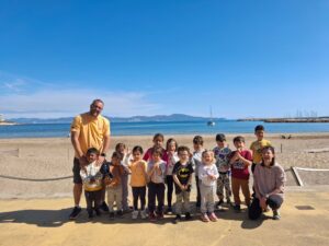 Primer de tot, vam baixar a la platja de Riells, on vam poder esmorzar i jugar a la sorra.