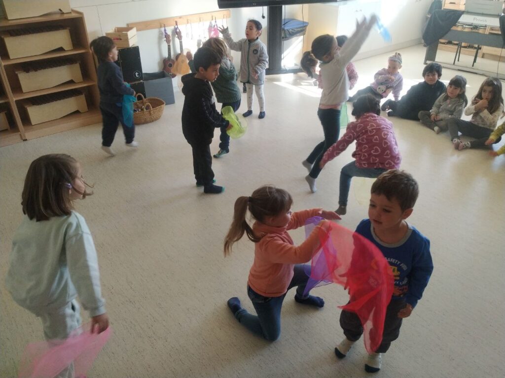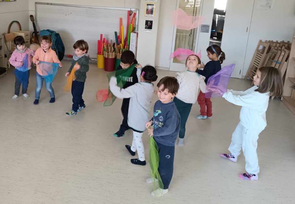 Els MITJANS d’infantil han gaudit ballant, les 12 variacions de W.A. Mozart, amb una parella molt especial: el Mocador Ballarí.