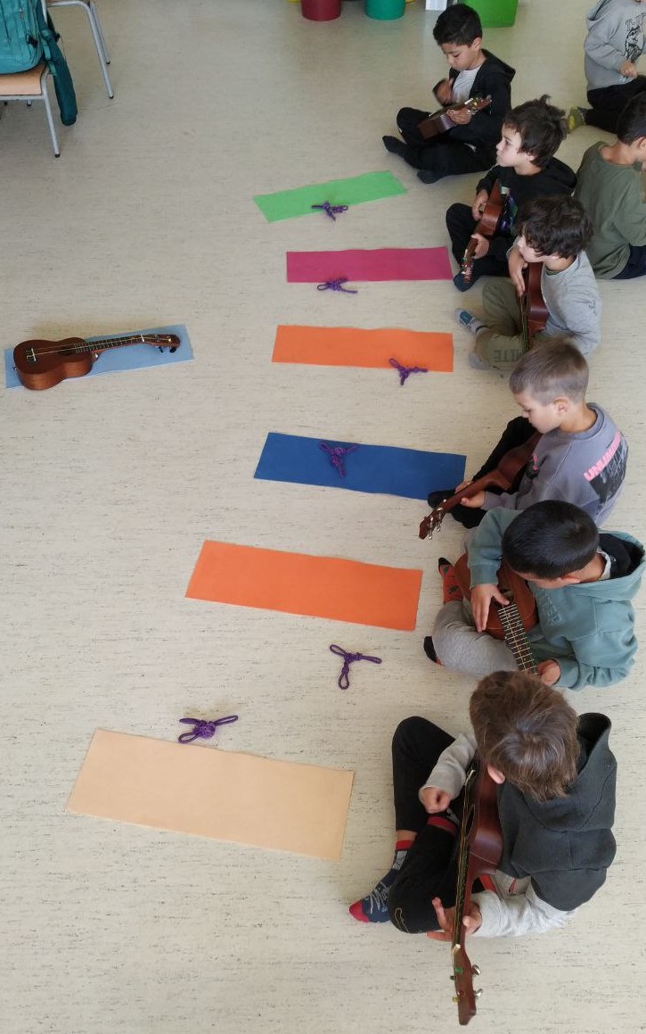 Primer dia d’experimentació amb els instruments ORFF i Ukelele, amb els GRANS d’infantil!