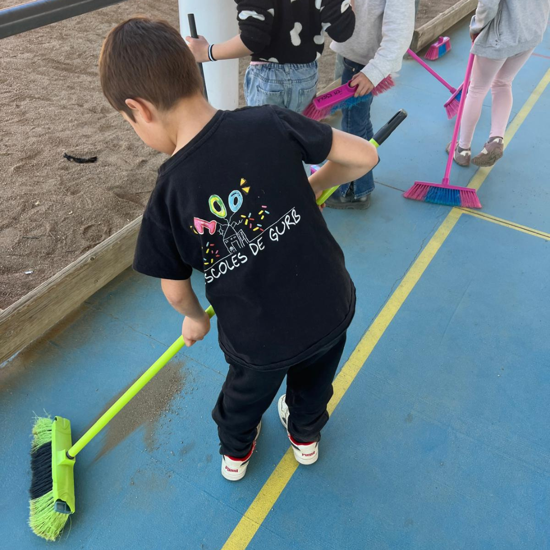 Tots els alumnes de 1r, 2n i 3r ens vam organitzar en diferents grups segons els nostres interessos per mantenir, netejar i ordenar diferents espais de l’escola: el porxo, la sorrera, la cuineta, les aules i els passadissos, l’hort…