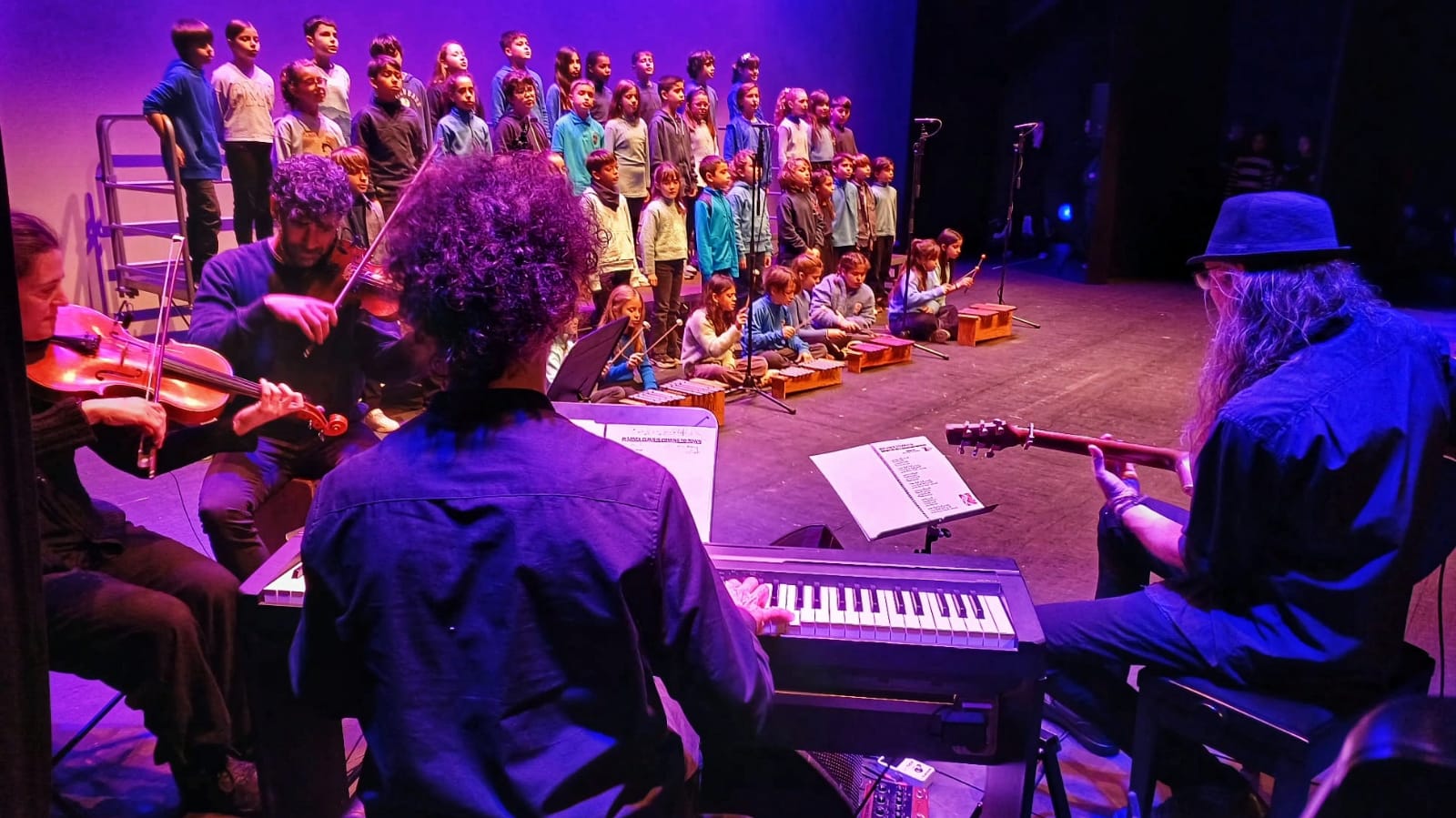 Una vegada més vam comptar amb músics convidats com en Roc Sala, pare de l’escola al piano, en Toni Corrales i la Mariona Ustrell de 4Cordes/Musicoop al violí, la viola i la percussió. L’alumnat de 6è, va dinamitzar el concert de forma magnífica amb algunes escenes dels Pastorets que van fer la delícia de petits i grans. Agrair de nou el suport tècnic de l’equip de La Sala i l’Ajuntament. Gràcies a tots i totes!!!