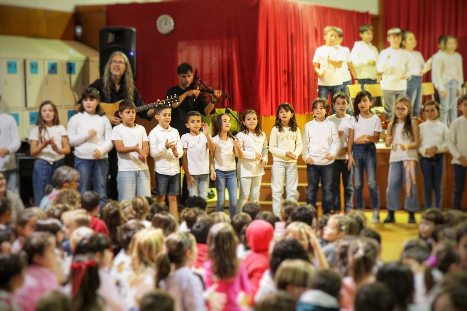 El passat dijous 14 de novembre vam celebrar Santa Cecília, patrona de la música. Un any més, l’acte principal va ser un concert al gimnàs de l’escola. Els grans protagonistes van ser els grups de tercer, quart i cinquè que duen a terme el projecte 4Cordes (violí i el violoncel). Algunes de les peces interpretades van ser del repertori de l’animador, pedagog i músic Xesco Boix. Ja que, enguany, just recordem que fa 40 anys que ens va deixar. També van participar alumnes de 6è i mestres interpretant diverses obres de diferents èpoques i estils. En acabar el concert també vam gaudir d’una petita cercavila dels nostres capgrossos Joan i Fontina. Un dia ple de música i emocions.