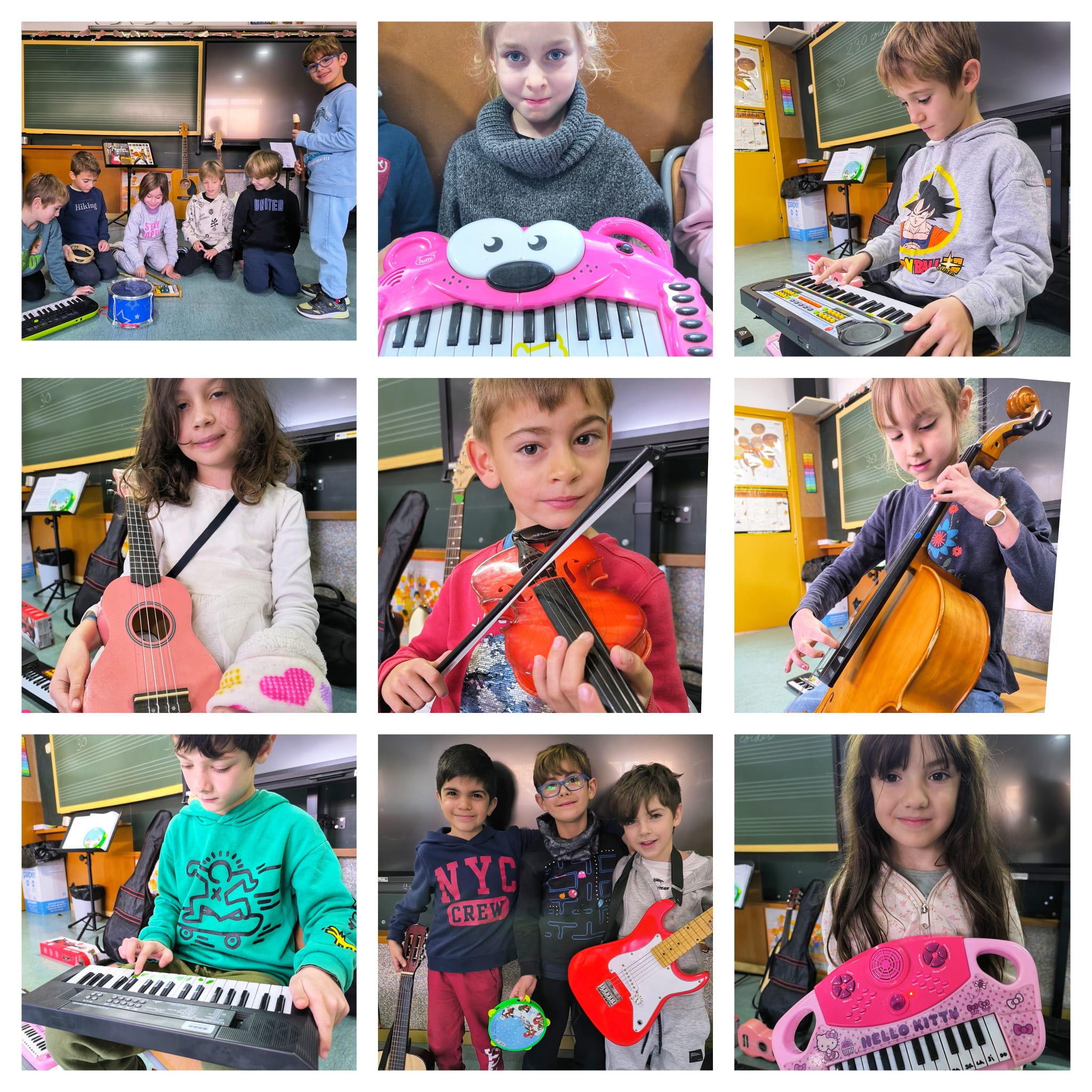 A les sessions de música, hem descobert diferents instruments musicals que hem portat de casa. Hi ha de tot tipus, tan d’elèctrics com d’acústics, de vent, de corda i de percussió; alguns de joguina i d’altres no: teclats electrònics, violoncel, guitarres elèctriques, acústiques o elèctriques, ukeleles, harmòniques… És molt enriquidor poder veure d’aprop i escoltar tants instruments diferents!