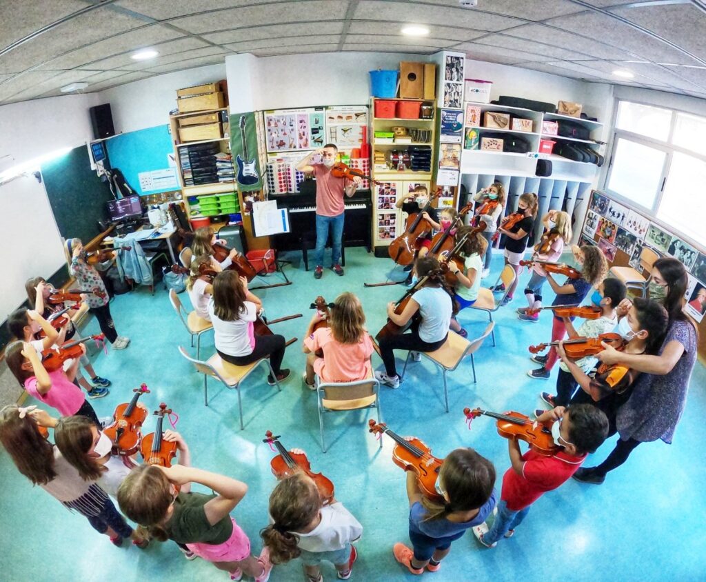 Procura aportar eines i instruments de creixement personal i de l’entorn per mitjà de l’aprenentatge del violí i el violoncel a través de l’orquestra amb els alumnes de 3r, 4t i 5è.