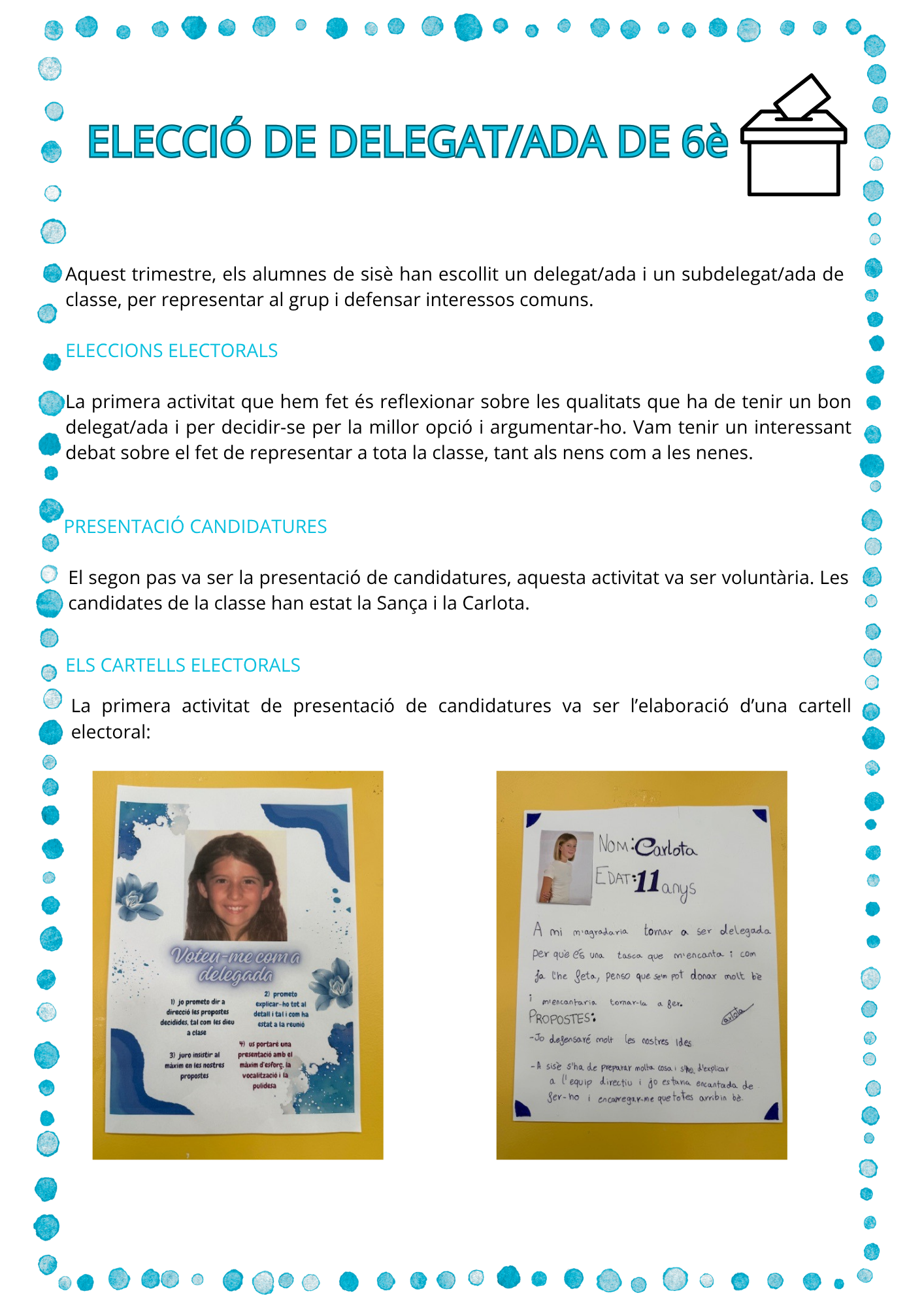 A les primeres setmanes de curs, el grup de 6è hem celebrat l’elecció de delegat/ada de la classe.