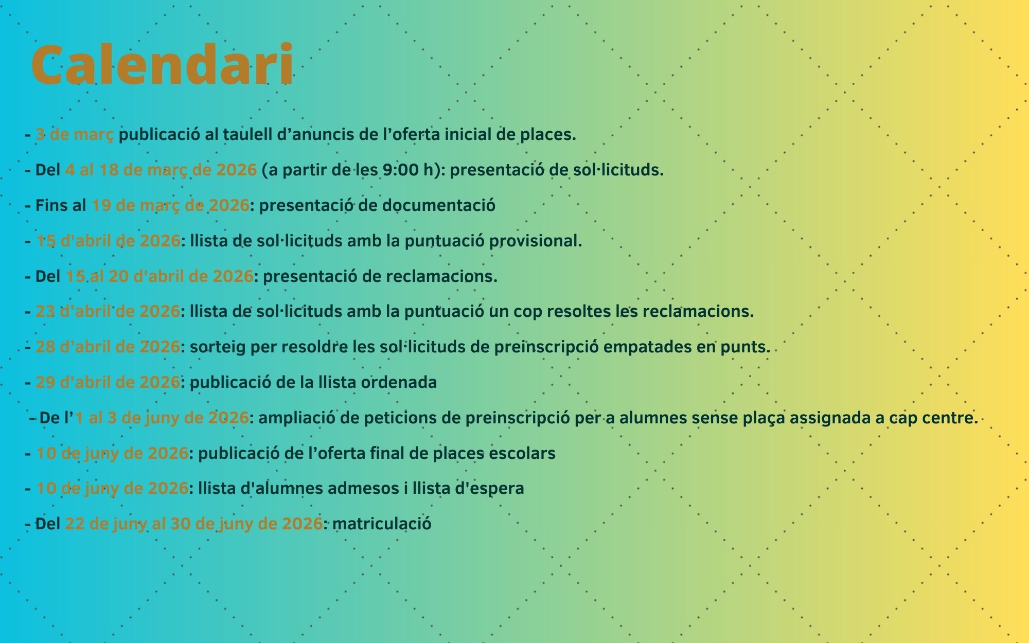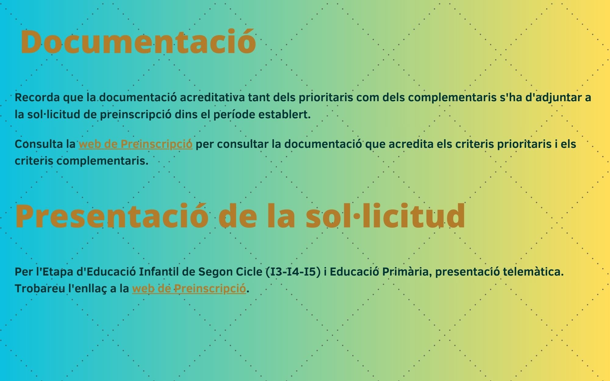 Des del 4 fins al 18 de març s’obre el període per fer les preinscripcions per a l’etapa sel Segon Cicle d’Educació Infantil (I3-I4-I5) i l’etapa d’Educació Primària.