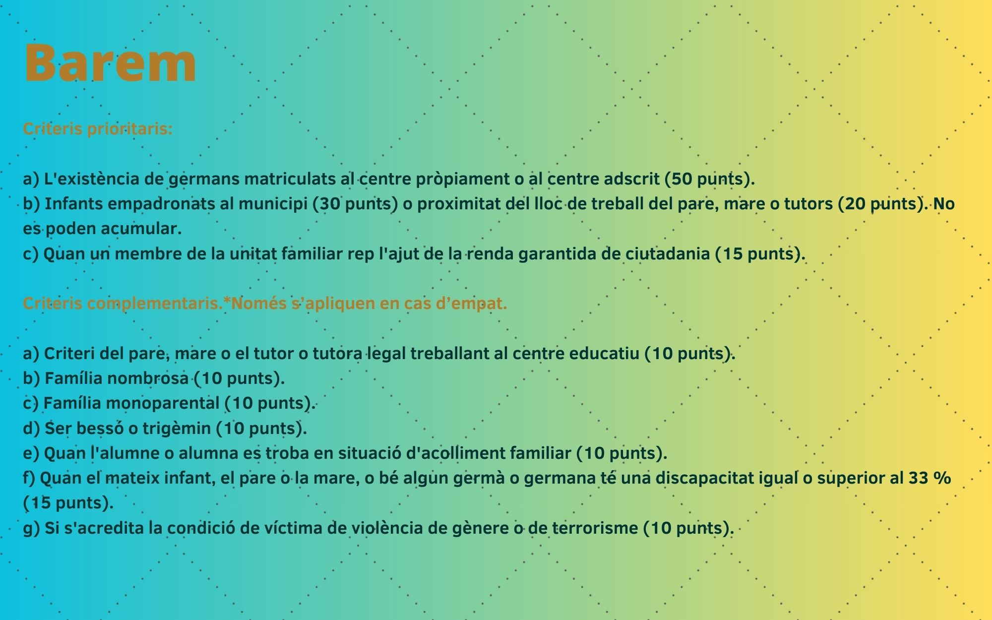 Podeu consultar la web de preinscripció per poder obtenir tota la informació.