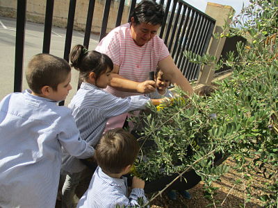 Aquest trimestre hem treballat en el projecte de ‘olivera. Com que a l’escola en tenim tres no ha calgut sortir fora de l’escola per observar-la i collir ne les olives per fer conserva. Al mes d’octubre, abans que es posessin madures i negres, les vam collir i comencàrem el procés de conservació: com els canvis