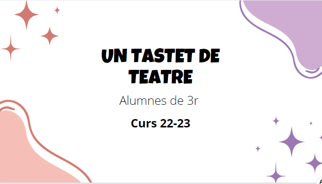 Un tastet de teatre Feu un comentari / Per Escola Les Muralles / 13 de març de 2023 / 3r General Portada Primària La canalla de 3r està preparant una obra de teatre amb les mestres Eli i Joan. Compten amb l’assessorament de la Sílvia, una mare de la classe. És una activitat del projecte Avancem.