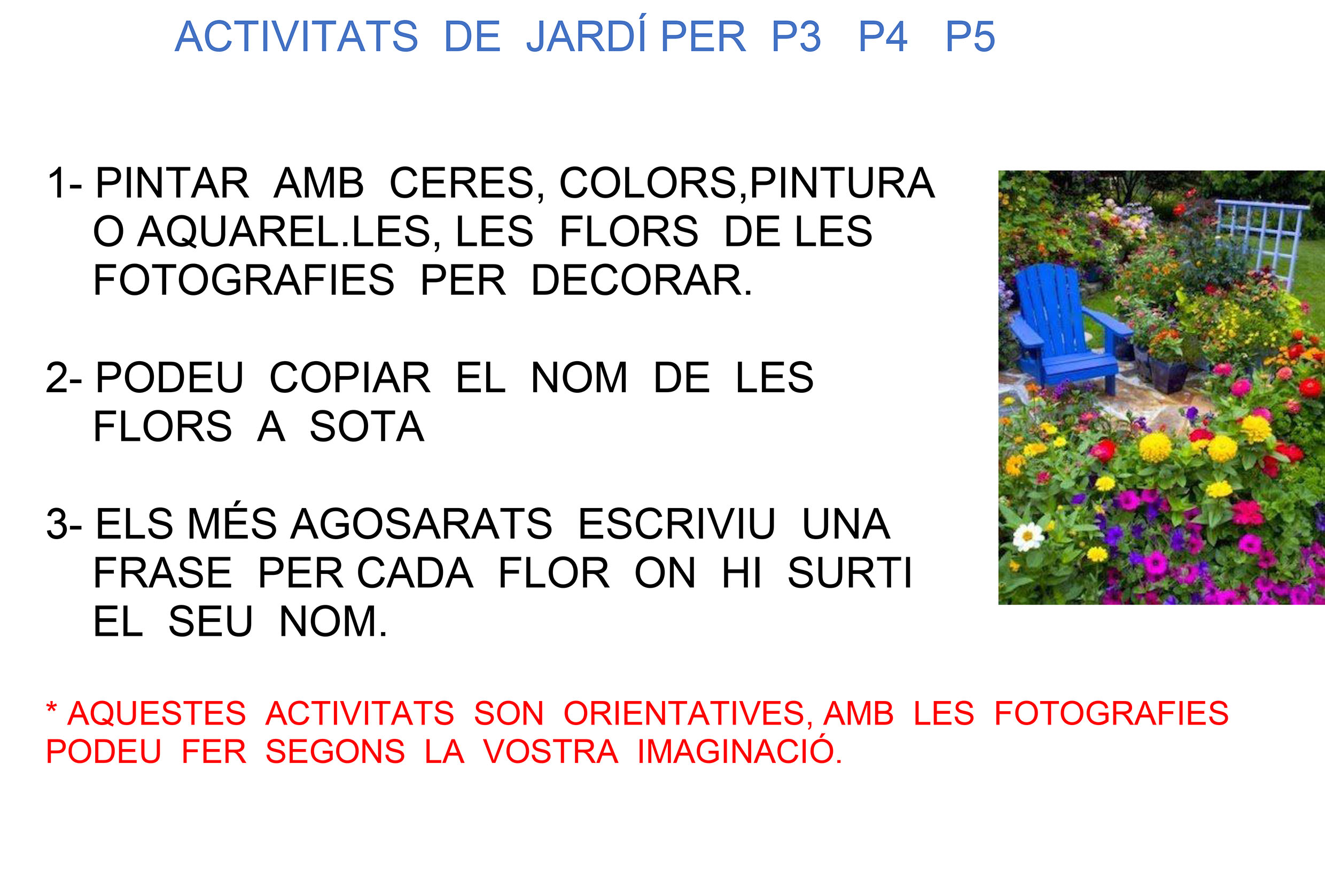 les flors del jardí i les del camp. Feu les que més us agradin i