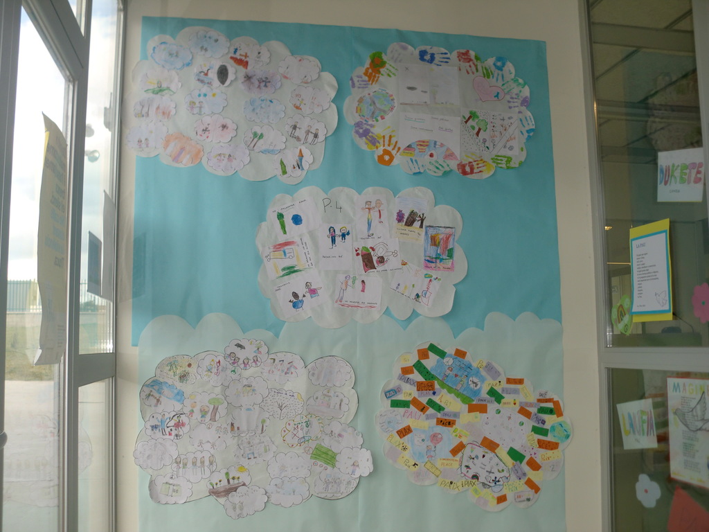 2. Uns quants nens i nenes de cada classe van presentar un núvol que representava el món millor que desitjava cada classe.