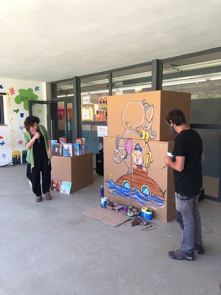 Avui dijous 27 de maig l’alumnat de 1r, 2n i 3r ha gaudit d’un espectacle extraordinari amb l’Anna Obiols i en Subi. L’Anna és escriptora d’històries i en Subi dibuixa aquestes històries en capses enormes. Podeu saber-ne més al blog de mitjans.