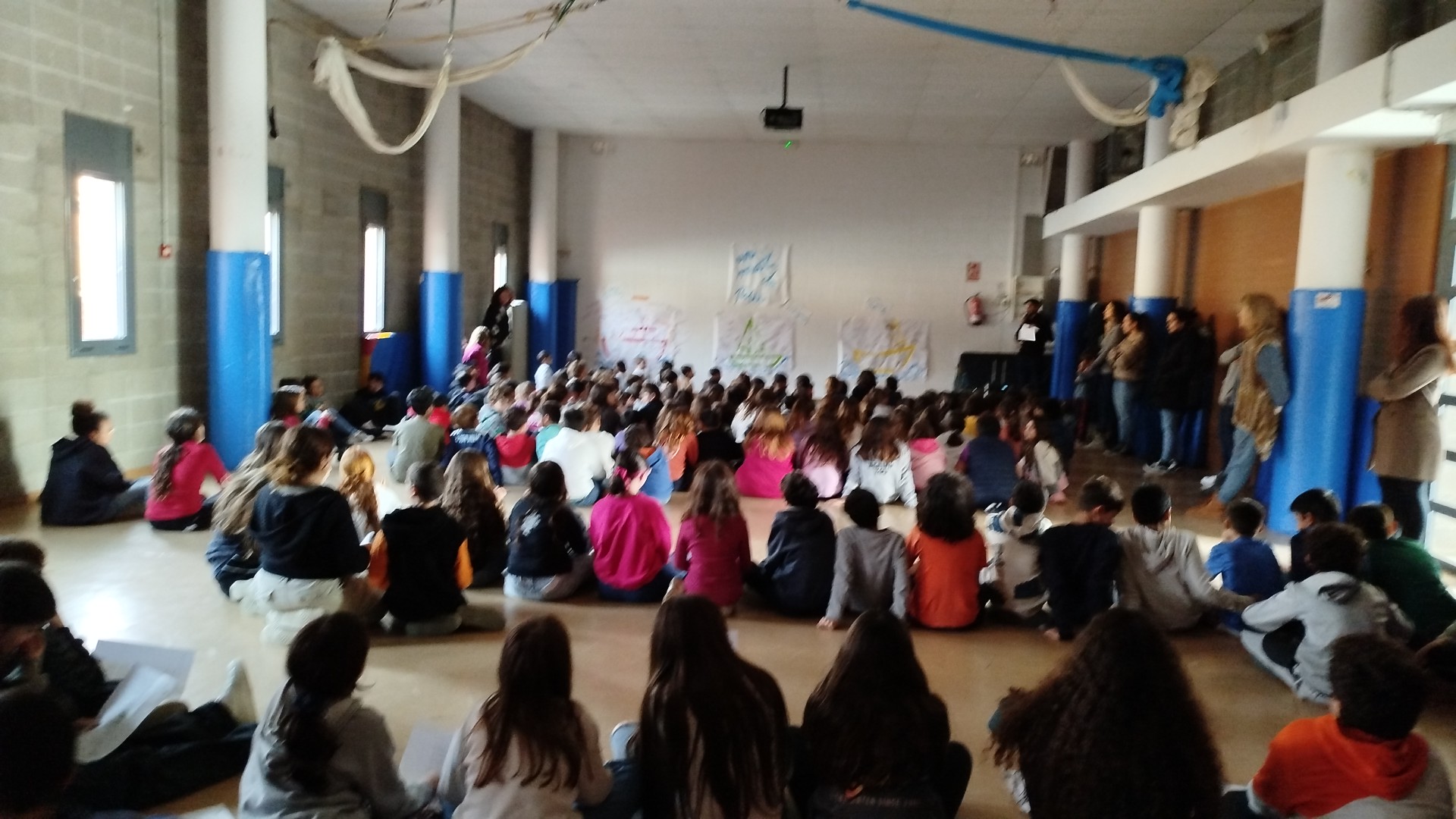 L’alumnat més gran de l’escola ha dedicat unes paraules de PAU a tothom i hem acabat la jornada cantant cançons de PAU. Els més petits…”Som amics”, 1r i 2n canten “Un món millor”, 3r i 4t “un món més dolç” i per últim 5è i 6è “El swing de la Pau”.
