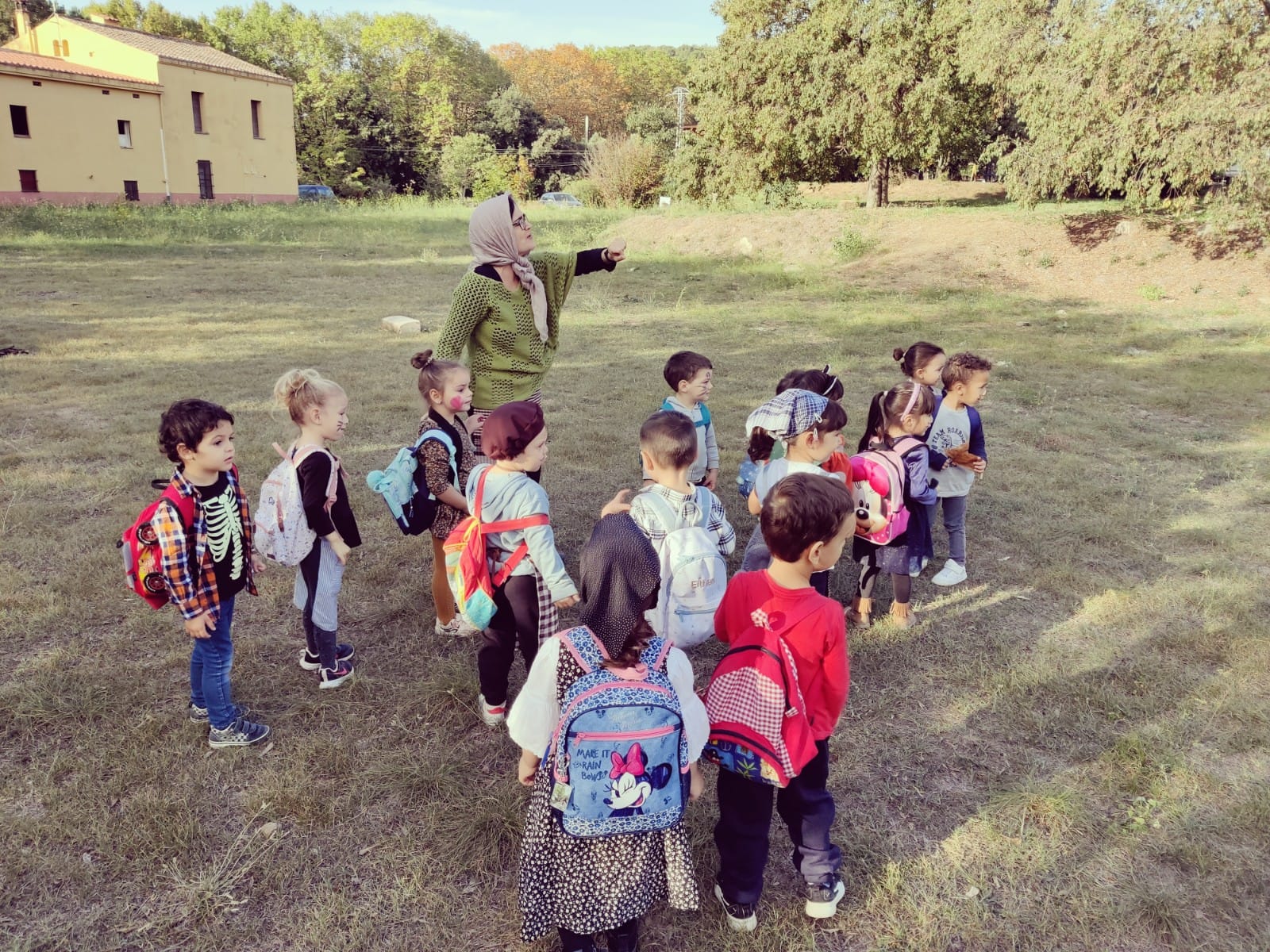 I….ja ha arribat el dia. Al matí els grans fan activitats vàries i els petits han anat a visitar a la Maria Castanyera i en Pepitu a la rectoria (casa seva en obres ;). Els hi han ofert fruita en comptes de castanyes que hi anirien més tard a buscar al bosc ja que les castanyes les trobarien a l’escola a la tarda, torrades. Els hi han cantat una cançó sobre un pingüí (animal en perill d’extinció per la calor que fa) i també han ballat danses. Visitar a aquell parell d’avis sempre és DIVERTIT!
