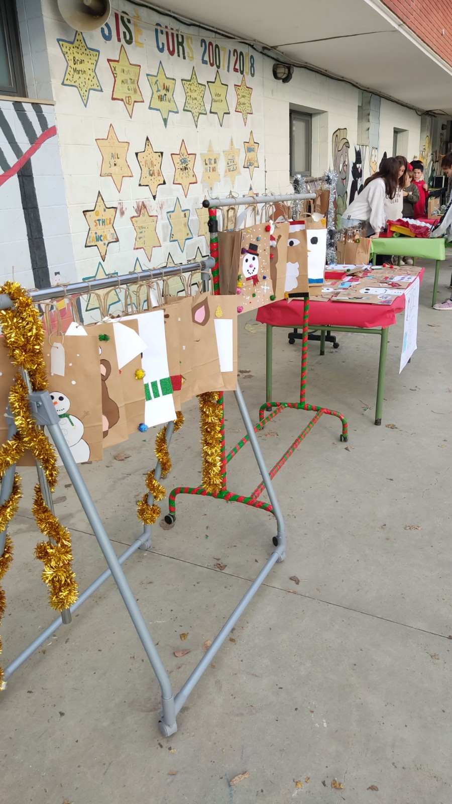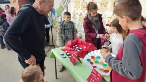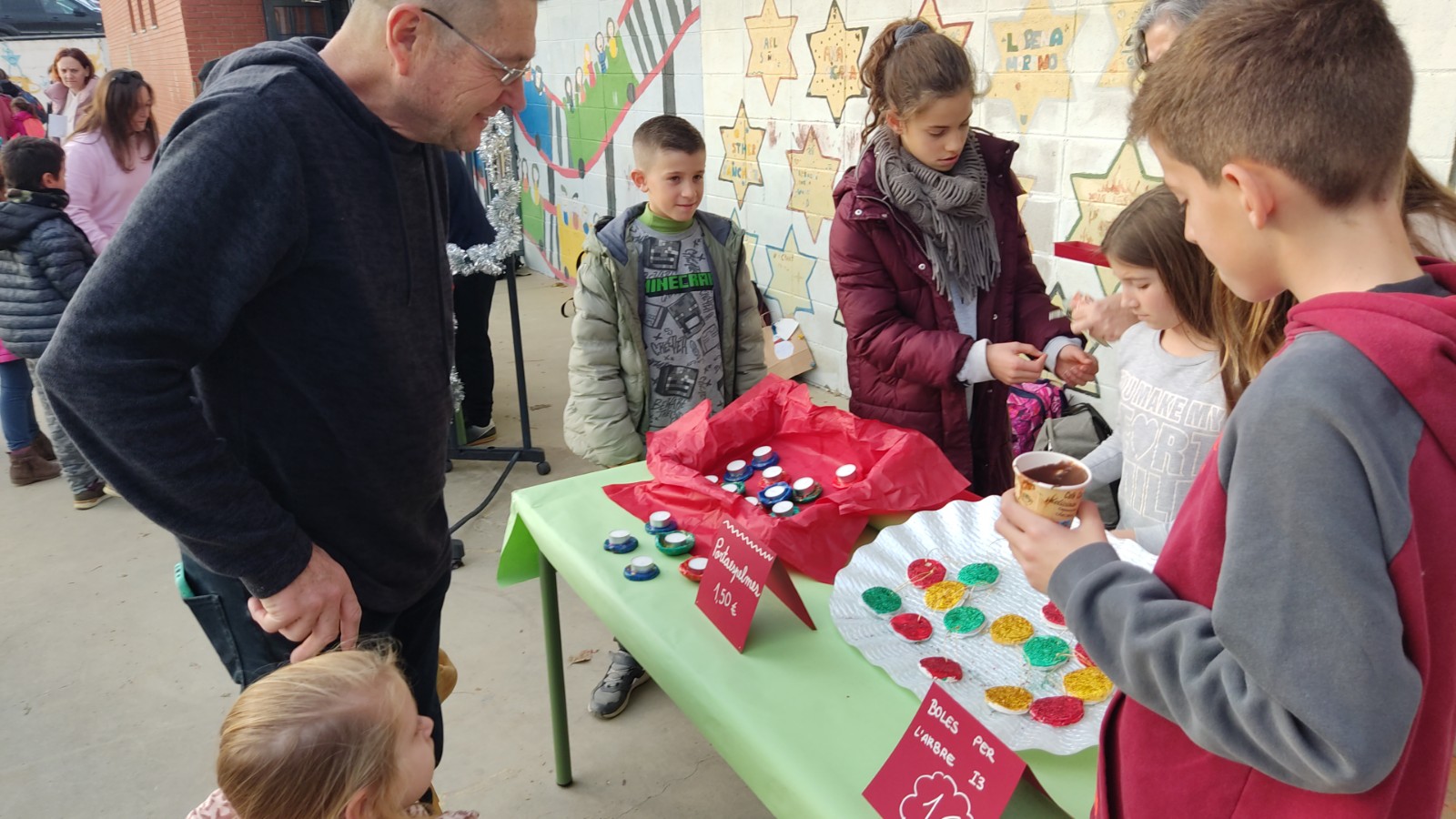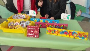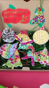Durant aquestes setmanes l’alumnat ha preparat manualitats a classe. Aquestes manualitats es van posar a la venda el divendres 16/12/22 al pati de l’escola. L’alumnat de sisè va muntar les paradetes i va organitzar la venda de totes les manualitats fetes per tots els infants.