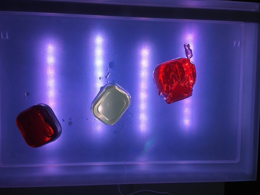 Aquesta setmana els nens i nenes de la classe dels Barrufets hem treballat els colors, les textures i les formes amb gelatines a la taula de llum i a la safata.