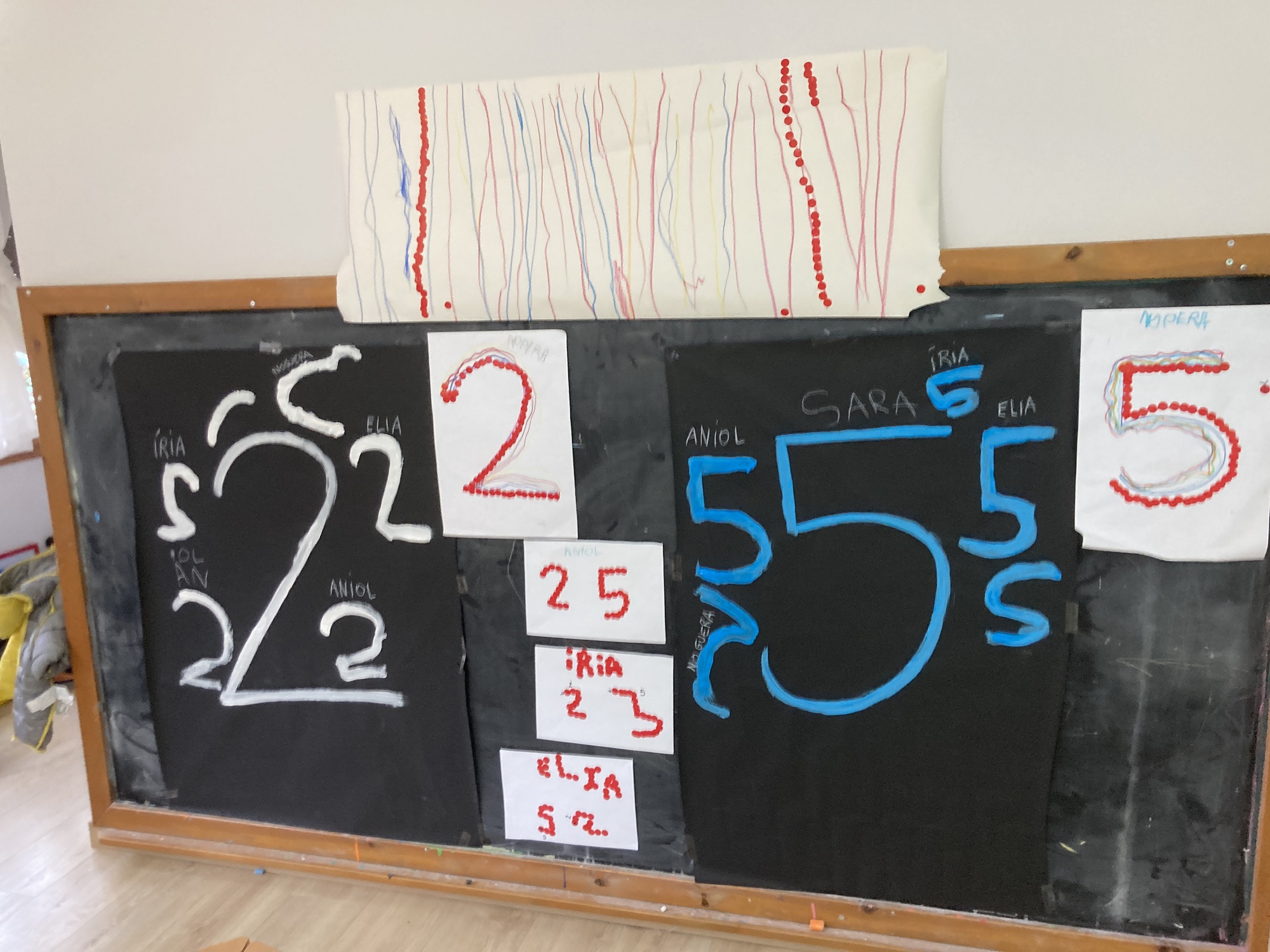 A P4 i P5 hem començat a concretar el treball del traç d’aquells números que ens costen més, el 2 i el 5!! Ho hem fet de diferents maneres i cada cop que acabavem una, volíem una manera més difícil!! Quins reptes!