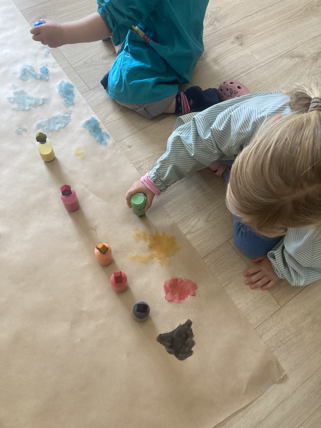 Una de les propostes del context d’art i representació era un material nou, unes ampolletes amb esponja amb les que podiem fer traços. Però haviem de controlar molt bé la pressió de la nostra mà! Perquè sinó… sortia molta pintura. Tot un repte!
