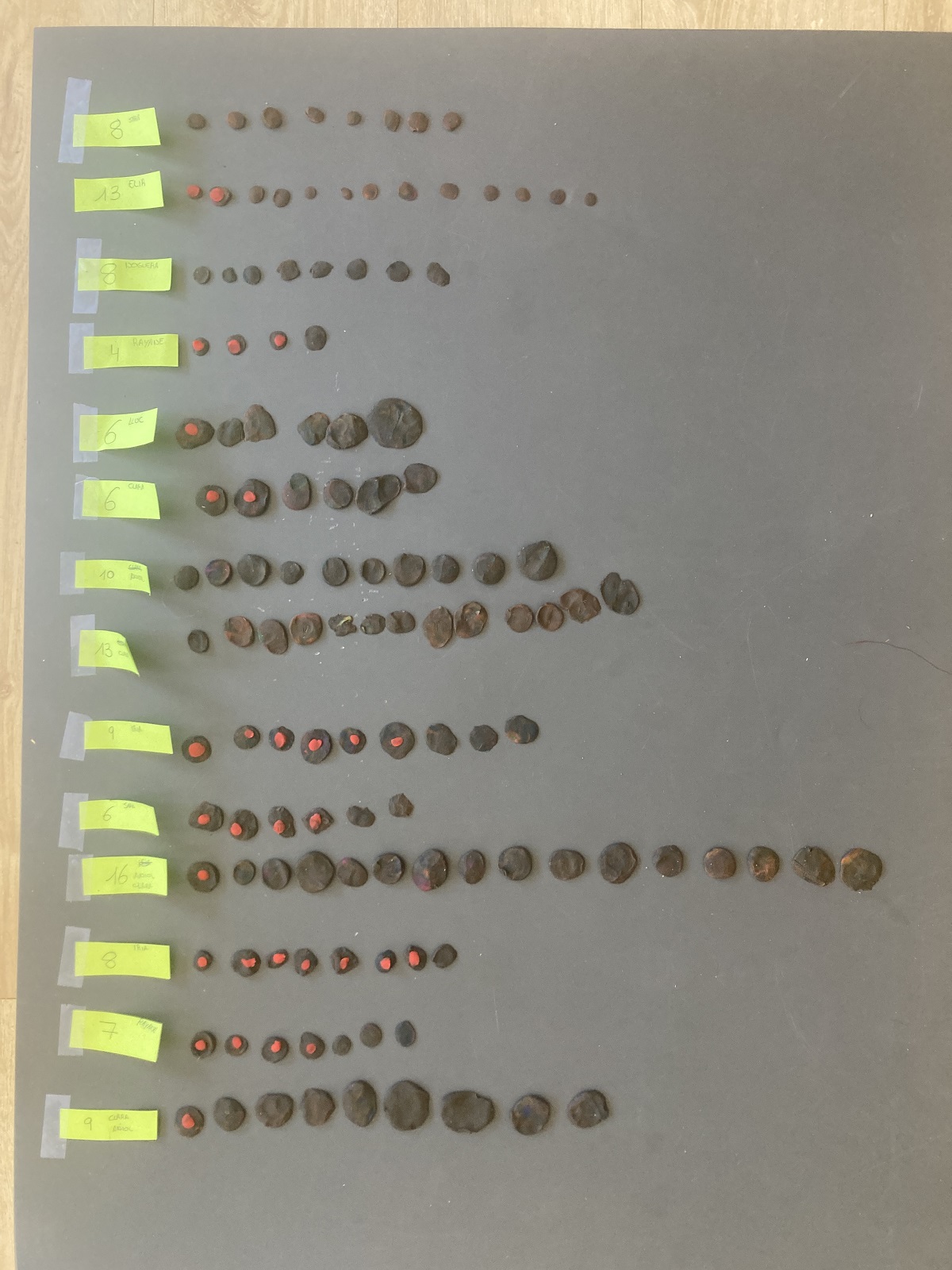 Un cop fet això, afegim plastilina vermella a sobre de les boletes grises, tot marcant les que estan habitades tot l’any. Mireu: