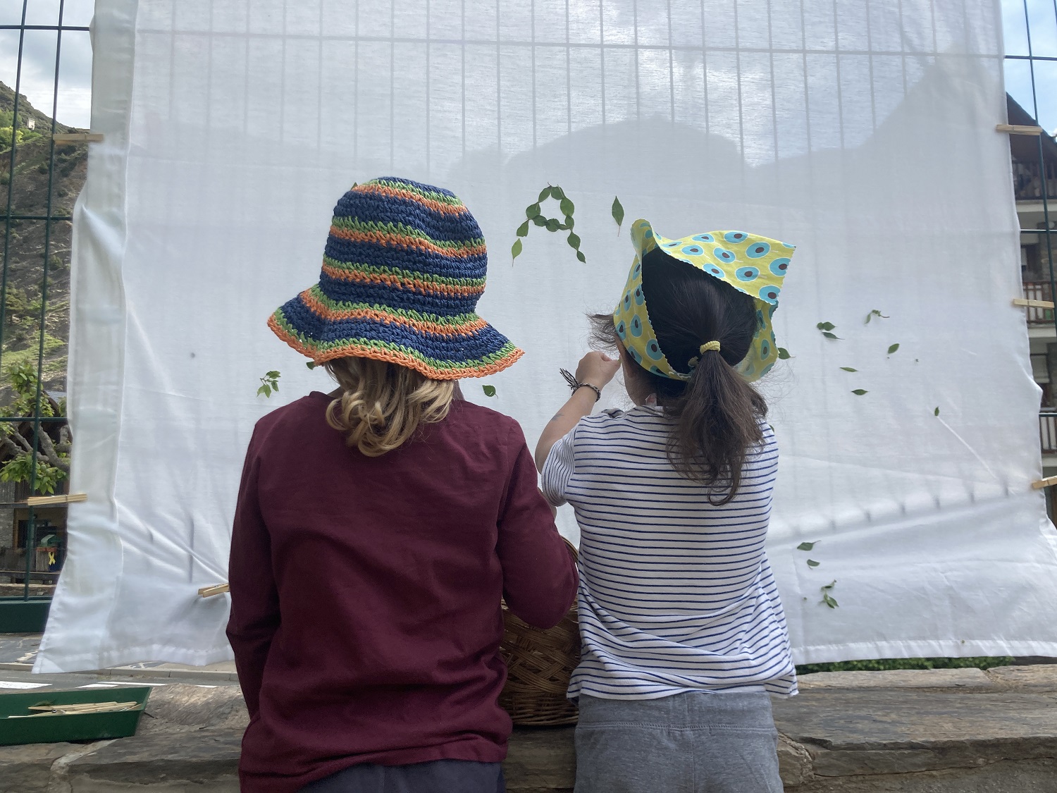 Ens van agradar tant, que vam tenir l’idea de sortir a passejar per a buscar-ne moltes i fer un bonic mural de tela. En vam collir moltes, i vam estar treballant amb les nostres dits per poder fer una bona pinça i arrencar-les de la tija. Les vam mirar de prop, i vam veure que tenen uns pels fins a un costat i a l’altre no.