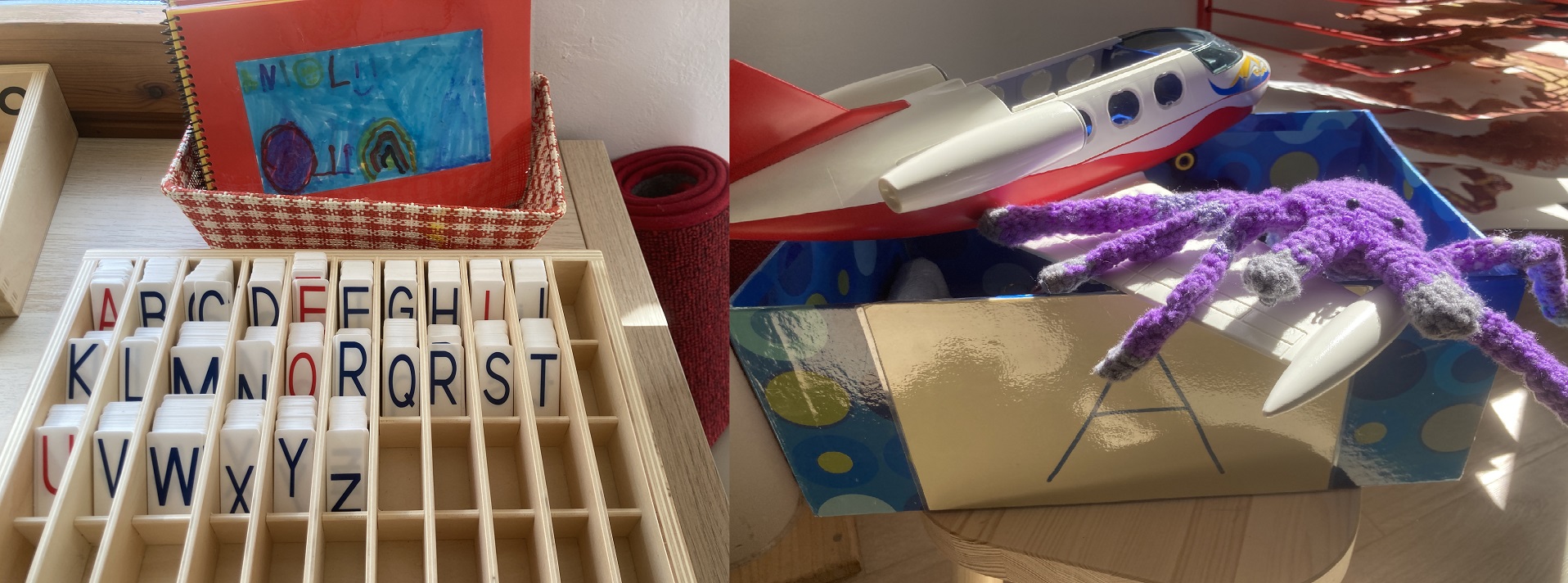 I els de P4 i P5 hem practicat molt l’escriptura amb objectes i lletres per a confegir. Que grans s’estan fent!!!