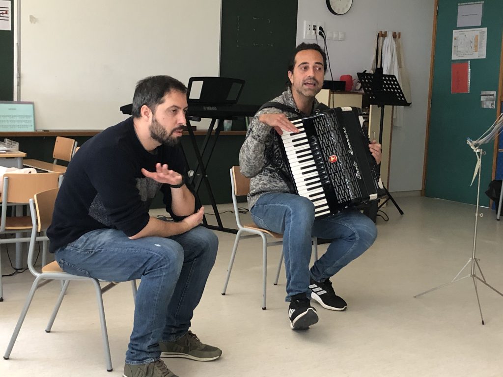 Finalment aquesta sessió tant especial va concloure podent tocar nosaltres mateixos amb l’ajuda d’en Luis el seu acordio! Quina emoció!