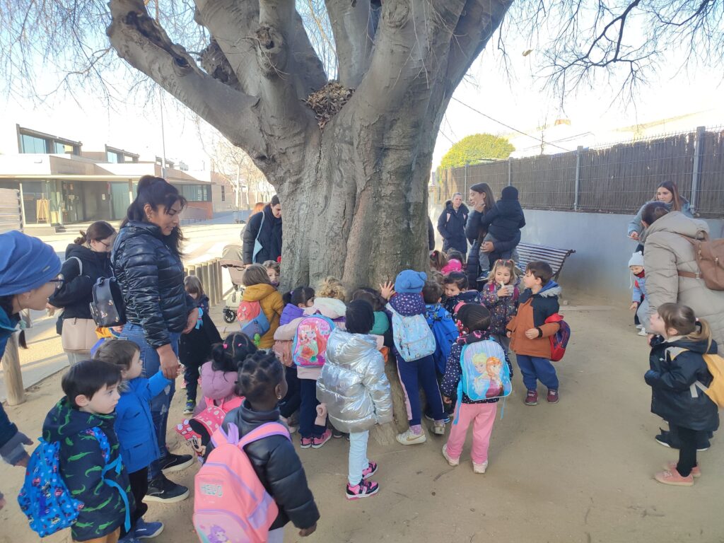 Aquesta setmana els infants d’I3 hem anat de passejada. Hem sortit de l’escola i hem visitat el gran Lledoner de davant de l’escola bressol el Teler. Un arbre centenari que dona nom al barri i a la nostra escola, hem pogut apreciar de ben a prop la seva grandària.