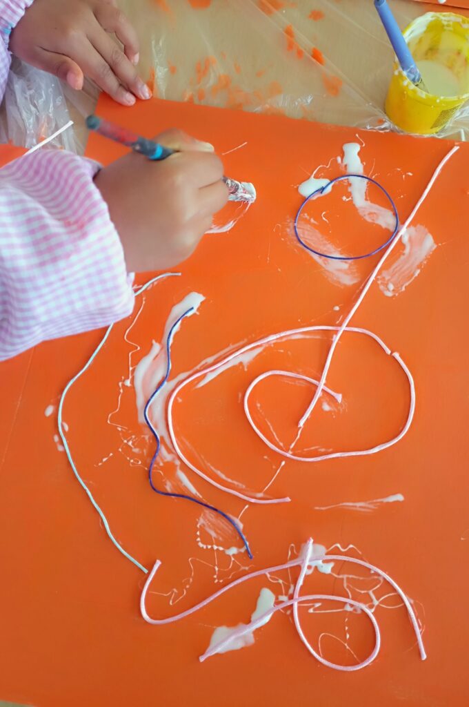Hem pintat, hem jugat amb els colors i també hem fet servir fils de colors per donar forma, textura i moviment a les nostres obres. Ha estat una activitat molt divertida, i ens ha encantat experimentar amb nous materials i tècniques!
