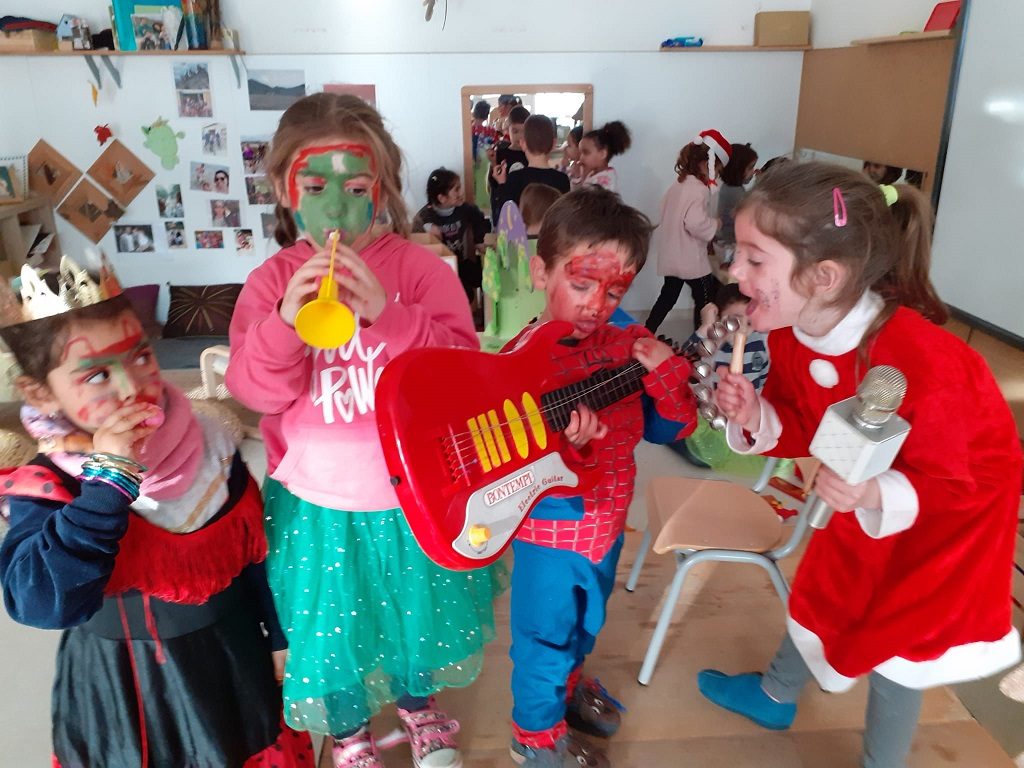 La música i els sons acompanyen als infants, són un dels elements més importats per els infants des del seu naixement. Els nens/es de P3, P4 i P5 a l’ambient de música, desenvolupen les seves capacitats musicals i sonores a partir dels objectes del seu entorn més proper en el panell musical, així com de la descoberta de diferents instruments. És un espai d’expressió musical per treballar l’auto percepció del so, l’oïda i la veu. Els petits i diferents espais musicals els hi permeten viure, sentir, manipular i observar com produir música i sons. Aquesta manipulació sonora, posa en joc la creativitat i la imaginació del nen/a mitjançant el joc solitari i associatiu.