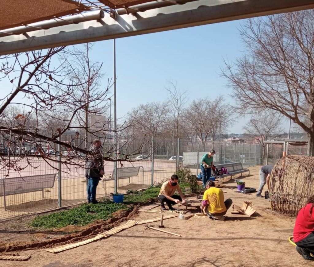 Ahir dissabte, la Comissió d’exteriors i els tutors de la Comunitat de Petits van estar treballant durant el matí per millorar la tanca i el sistema de reg de l’hort de plantes aromatiques del pati de petits.