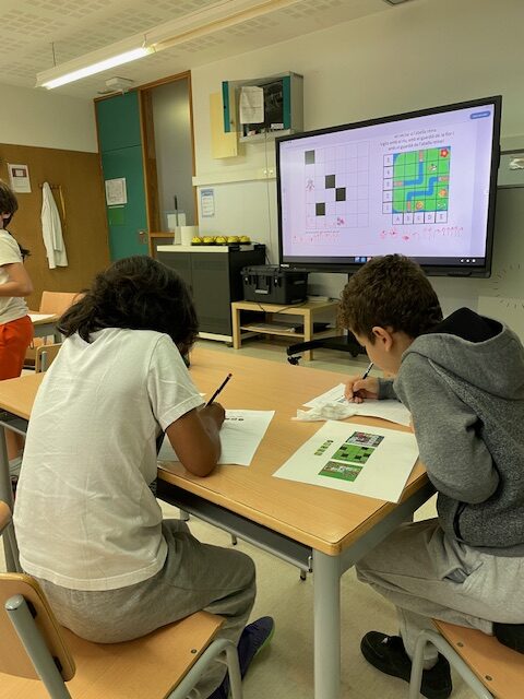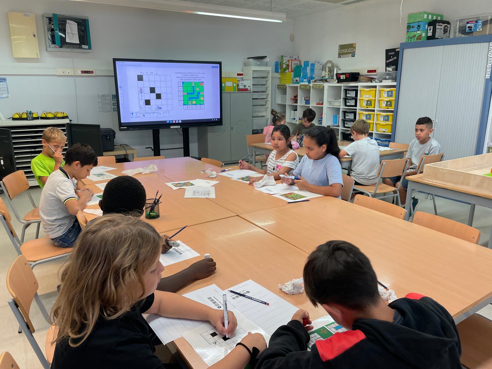 Després dels petits reptes manipulatius amb robots, ara ha arribat l’hora d’aplicar la programació directament al paper. No és tan fàcil com sembla, ja que costa molt veure si t’equivoques i necessites una gran orientació per saber on i com estarà el robot, i com avançar.