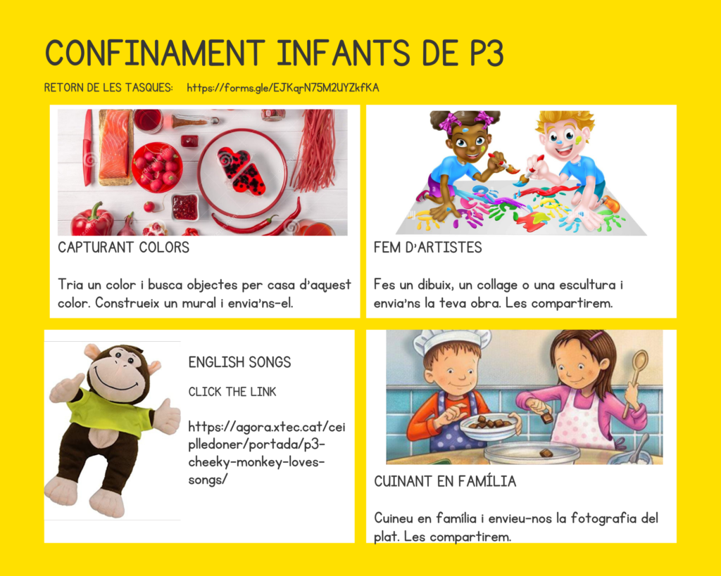 Compartim amb vosaltres algunes propostes per aquests dies. Us animem a fer-les i a compartir-les amb nosaltres, a través del formulari enllaçat a la imatge de la bústia. També ens podeu fer el retorn a través del correu a8053391@xtec.cat. Esperem les vostres respostes.