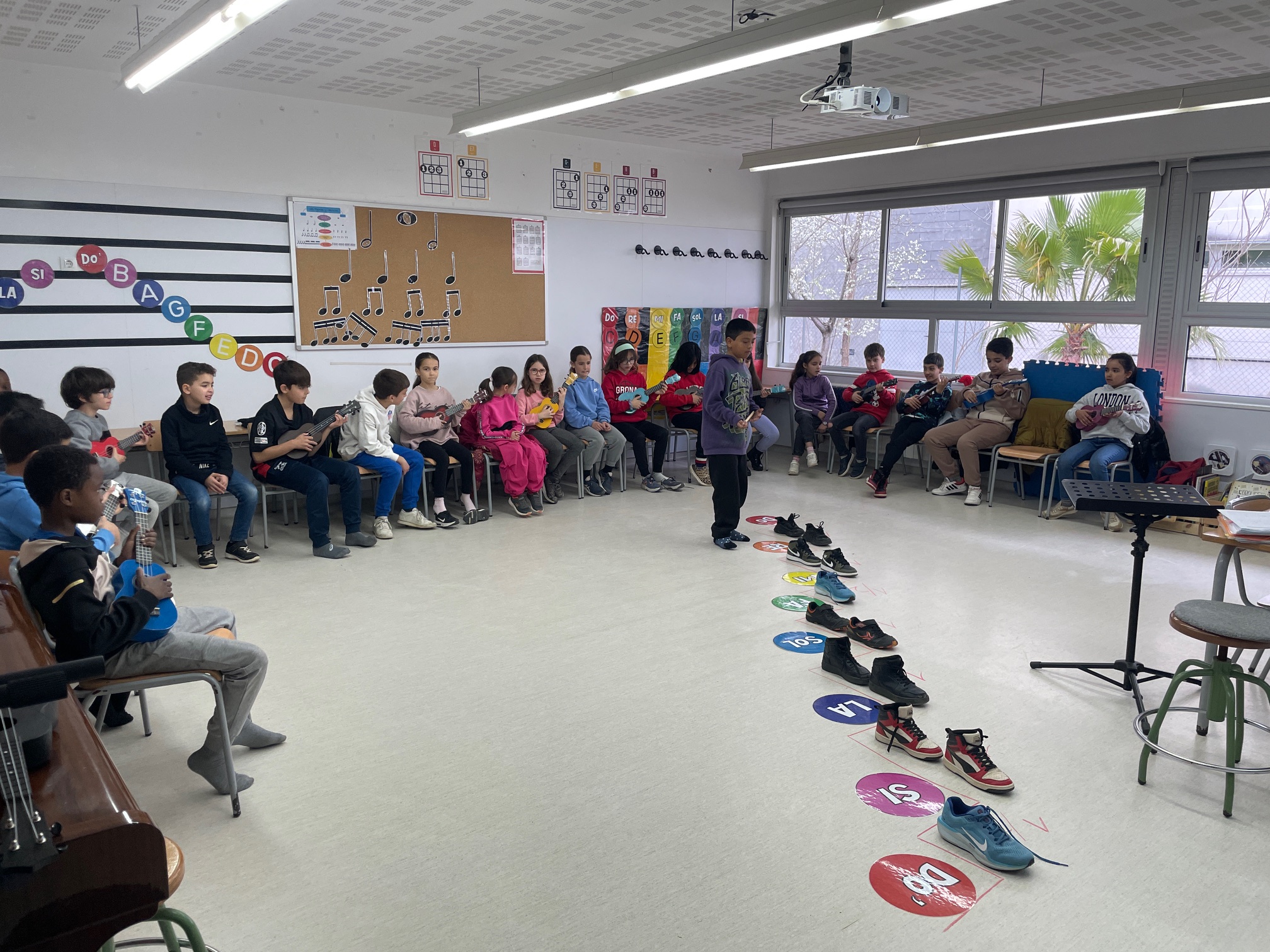 A 4t aquest 2n trimestre hem començat a tocar l’ukelele. Ja dominem les notes de les quatre cordes: