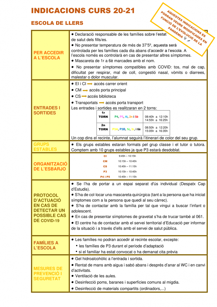 INDICACIONS CURS 2020/2021