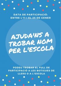 18/01/21Enguany ens disposem a donar nom a la nostra Escola i per això hem engegat un procés participatiu on s’accepten les vostres propostes!