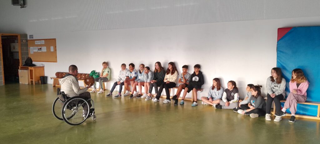 Dins de la situació d’aprenentatge d’Educació Física dels Esports per a tothom, l’alumnat de cicle superior hem rebut la visita d’en Carles, educador del grup MIFAS. Ens ha vingut a parlar sobre el bàsquet adaptat en cadira de rodes, de com viu ell l’experiència de no poder caminar i quines adaptacions necessita en el seu dia a dia. També hem pogut experimentar amb les cadires i fer uns partits de bàsquet.