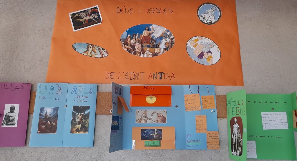 Per això, a l’àrea de català , i per treballar la comunicació oral i l’expressió escrita, hem fet un treball sobre la mitologia grega i romana. En grups de dues persones, hem elaborat un petit lapbook on hem explicat els trets més importants i curiosos de cada déu o deessa.