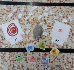 La cara de sorpresa dels “ratolins” en veure arribar l’Anna M. que venia a fer música va ser genial. Descobrir la Giberta amagada dins la bossa ja va ser un esclat d’alegria i emoció. I és que amb la Giberta hem estat fent diferents jocs musicals barrejats amb la preparació de la dansa de la Castanyada. Ara estem atrafegats aprenent les cançons de Nadal però sempre tenim estones per ballar amb la dansa de ‘El pingüí’ o rient tot fent ‘Emapaparrusca’.