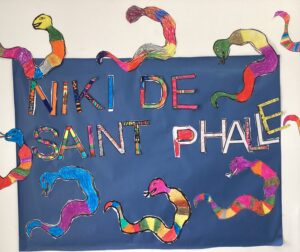 Fa uns dies hem acabat de treballar a l’estil de la Niki, hem pintat animals amb tots els colors alegres que hem pogut, dibuixat serps, decorat lletres de pasta de sal… Fins i tot hem fet una escultura de guix de forma arrodonida com li agraden a la Niki.