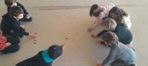 Aquest trimestre hem estat treballant, els Girs, els Salts, l’expressió corporal mitjançant el teatre i els jocs tradicionals.