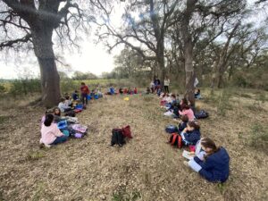 Després, vam fer una parada als suros, on vam esmorzar i vam fer alguna cabanya. Va ser molt divertit. A més, vam trobar un arbre mort que s’assemblava a l’Hèctor. Ell és un arbre mort que ens ha visitat a l’escola, proposant-nos algunes activitats d’Educació Ambiental.