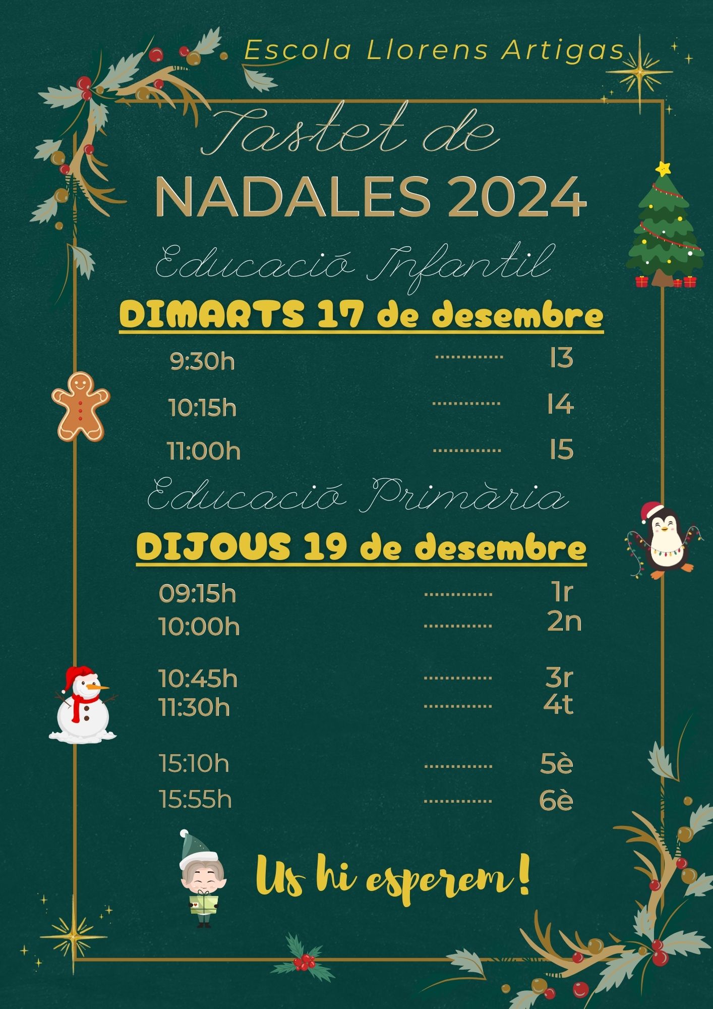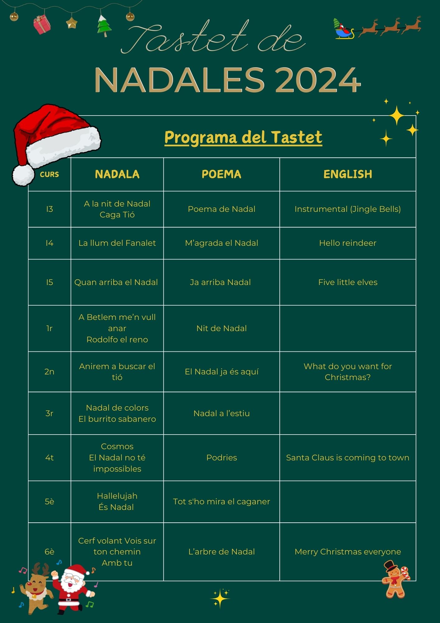 El tastet de Nadales 24, un cop més, ESPECTACULAR! admin20/12/24 Un curs més, el tastet de Nadales ha estat un èxit! Les famílies han omplert el gimnàs, convertit en auditori, i les nostres nenes i nens han cantat com els àngels!!! Podreu veure els videos al blog! Bones Festes!!!