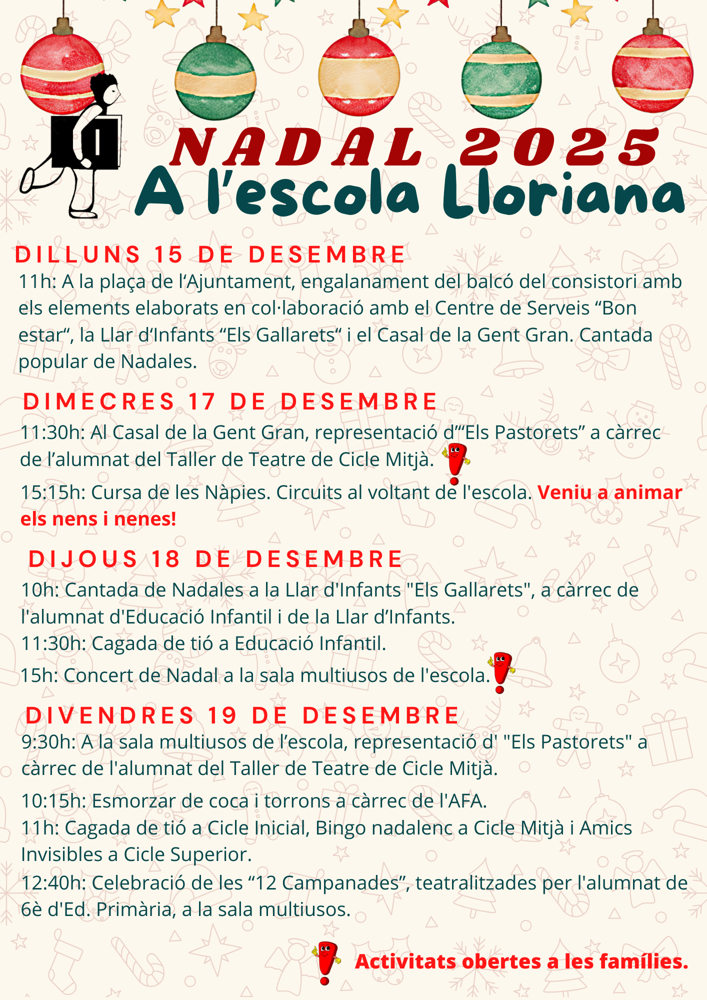 PROGRAMA ACTES DE NADAL 2025 Feu un comentari / Per admin / 9 de desembre de 2025 / General Portada A continuació us compartim la programació dels actes de Nadal d’enguany.