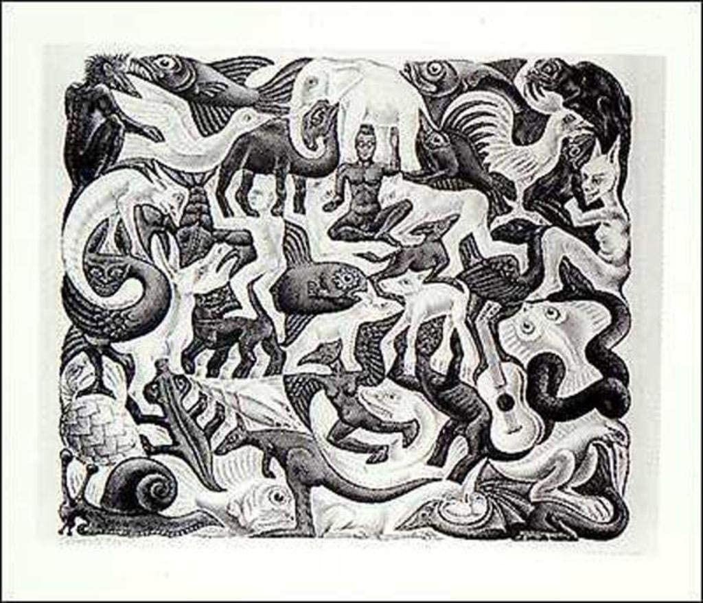VEIENT UNA OBRA D’ESCHER, S’ADONEN QUE TÉ UN INTRÚS, S’ANIMEN A BUSCAR ALTRES OBRES D’AQUEST ARTISTA I BUSCAR L’INTRÚS.