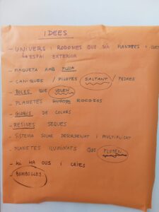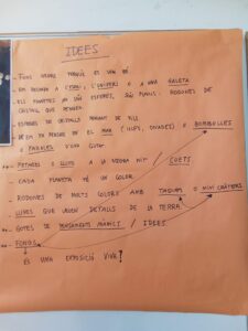 Treballem en dos grups paral·lels corregint el text i anotant idees. Rellegint les llistes d’idees es generen debats, i d’aquesta manera, obrim dos temes nous: