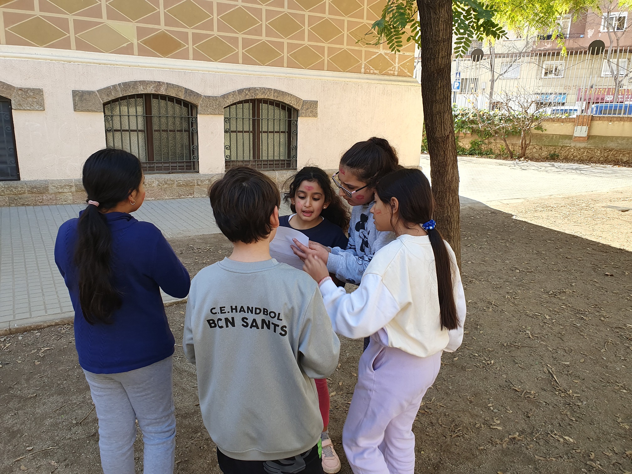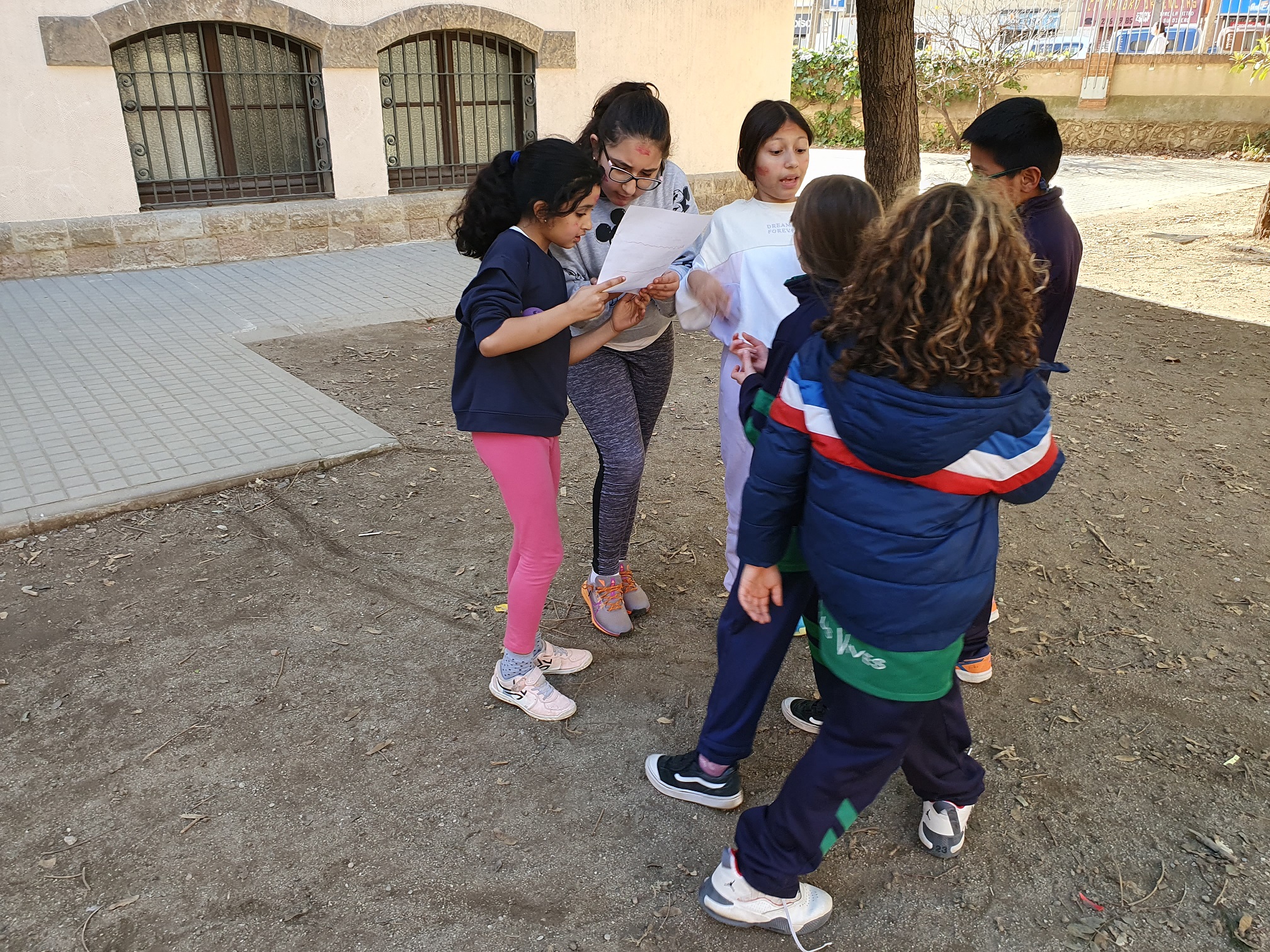 El joc es va dur a terme al sorral de primària i a continuació us expliquem com es juga. Ens hem dividit en 4 equips de 5 persones. Cada equip havia de buscar un lloc pel sorral per establir la seva base. Després, els equips havien d’organitzar-se per rols: dos atacants, dos defensors i un encarregat. Els atacants havien d’anar a les altres bases a aconseguir peces de ‘jenga’ (construccions de fusta), que comptaven un punt, i les pilotes de goma, que en sumaven cinc. Les peces de ‘jenga’ s’aconseguien a força de jugar a pedra, paper o tisora amb un dels dos defensors d’aquesta base. Les pilotes s’obtenien pels atacants, un cop dins de la base, encertant una pregunta d’un full que tenia l’encarregat. Les qüestions eren al voltant de curiositats dels professors.
