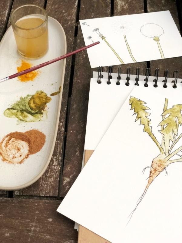 Mezclar: 1cucharadita de especias en polvo con una cucharada de agua aproximadamente. La cantidad exacta depende del polvo. Mezcla y ya puedes pintar como quieras. Notarás como el papel, el pincel y el agua huelen fantástico mientras pintan.