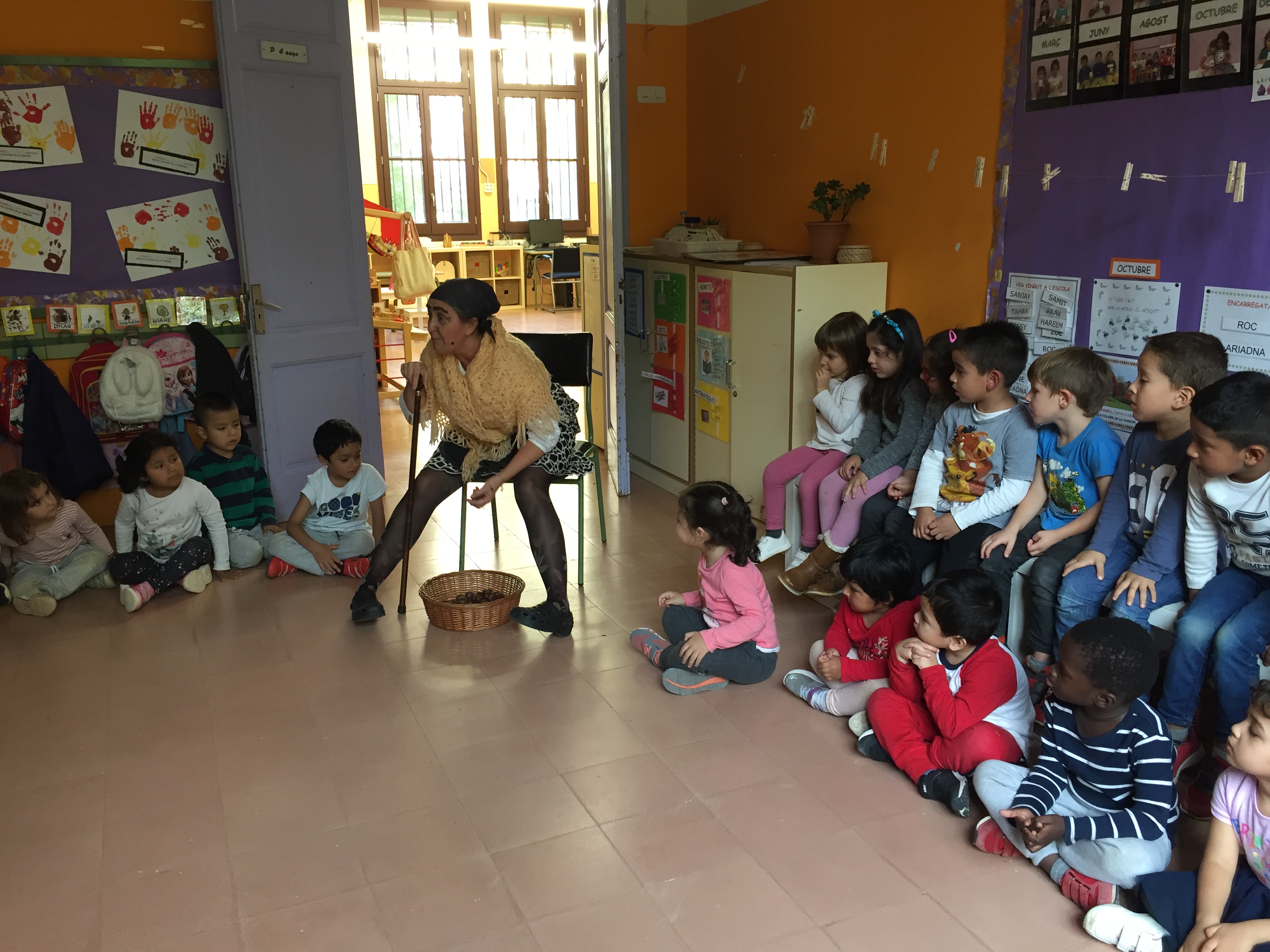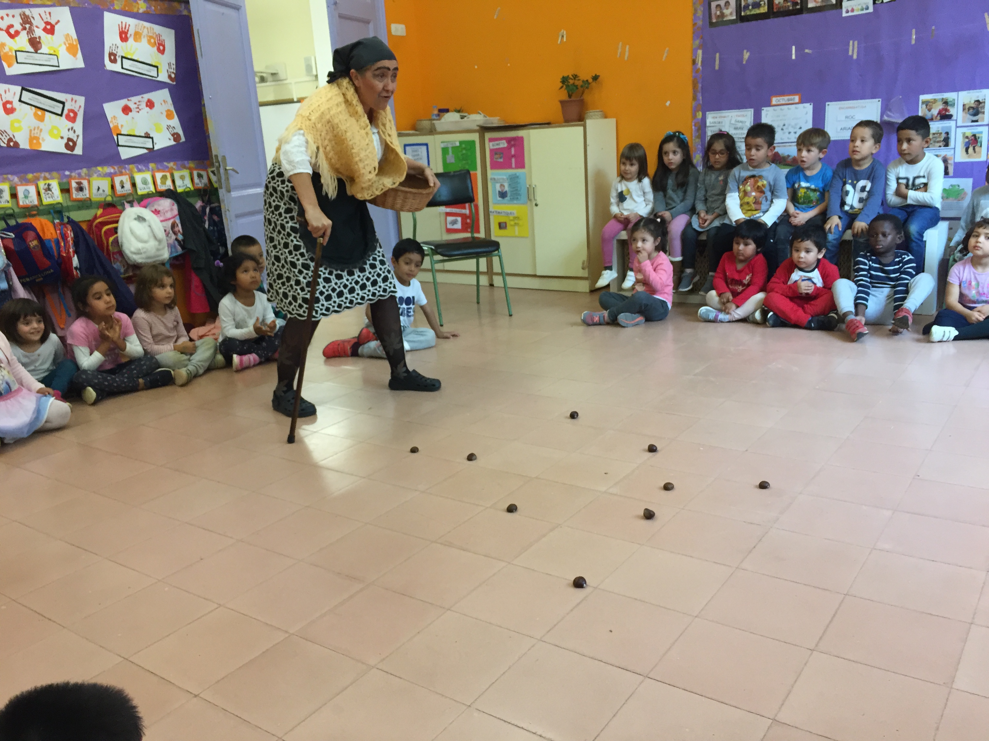 LA CASTANYERA ENS HA VINGUT A VISITAR I ENS HA PORTAT CASTANYES PER A QUE LES SEVES AJUDANTS LES TORRIN PER PODER-LES MENJAR.
