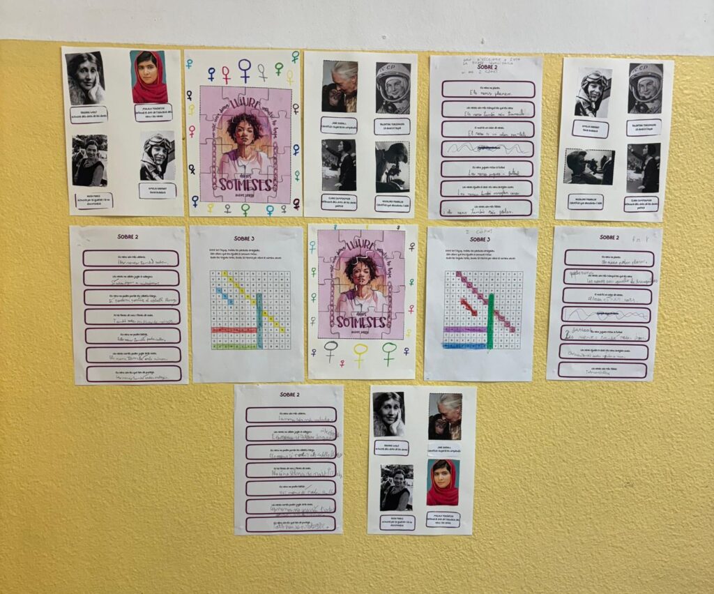 Amb motiu del Dia Internacional de la Dona, que se celebra el 8 de març, els nens i nenes de l’escola han participat en la creació d’un mural molt especial. Cada infant ha fet una papallona on ha escrit el nom d’una dona important per a ell o ella. Els alumnes més grans, a més,